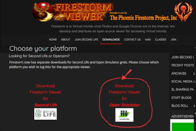 Firestorm è il programma consigliato, dispone di due versioni, una per Second Life e una dedicata a Opensimulator.