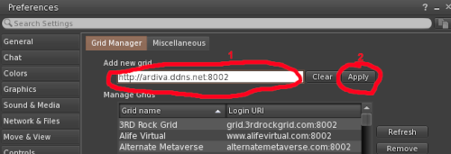 Ardalia non c'è, per aggiungere Ardiva alla lista dei mondi raggiungibili puoi fare così:1) digita "http://ardiva.ddns.net:8002" nella casella "Add new grid"